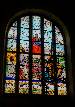 Drugi witraż znajduje się w prawym skrzydle transeptu i przedstawia on postać św. Mikołaja patrona księdza proboszcza Dzierżyńskiego. U stóp świętego dziewczęta w barwnych strojach ludowych, a w tle charakterystyczne dla secesji pnącza. Po prawej stronie widok wcześniejszego kościoła rozebranego w 1904 roku. Religijny charakter dzieła podkreślają postacie trzech aniołów znajdujące się nad głową świętego. W dolnej części witraża umieszczono wstęgowy ornament z powtarzającym się motywem irysów z upodobaniem stosowanym przez artystów wiedeńskiej secesji. Kompozycja jest zestawieniem łagodnych pasteli, bieli i błękitu z intensywnymi kolorami strojów i soczystej zieleni. Witraż ten najlepiej jest oglądać jesienią w słoneczne dni w godzinach przedpołudniowych.