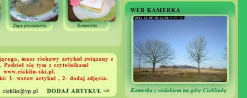 Od poniedziałku 28 listopada 2011 r. odwiedzający stronę Cieklin – kolebką narciarstwa polskiego (www.cieklin-ski.pl) mogą na bieżąco oglądać widok na Cieklinkę, jaki rozciąga się z drogi Jasło – Folusz. Obraz z kamerki odświeża się co 5 minut.