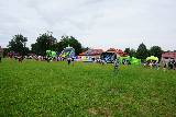 Trwała zabawa na całego, tłumy rozbawionych dzieci na stadionie sportowym w Cieklinie.